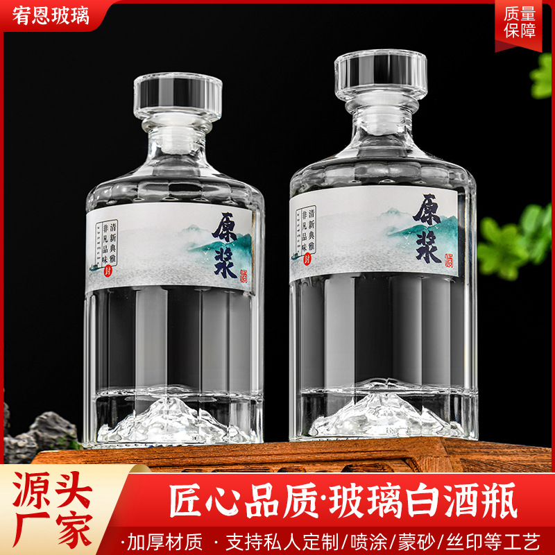 500ml開山酒瓶透明晶白料白酒瓶セット現物卸売り密封空酒瓶分装酒瓶