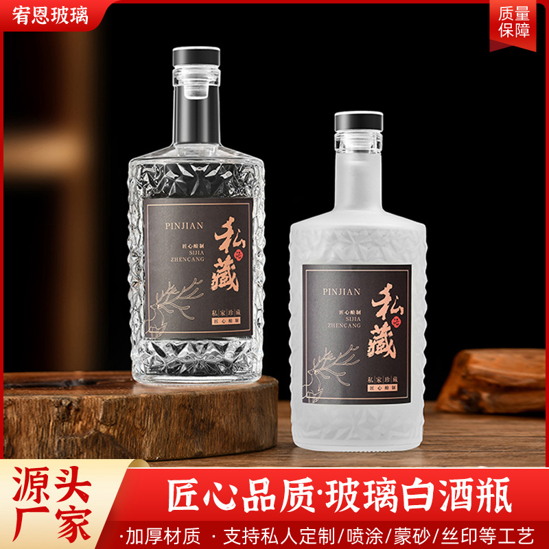 1斤入り透明散酒瓶現物卸売り500ml白酒瓶厚晶白材ガラス空酒瓶