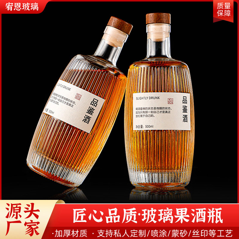 ラム酒瓶1斤入り空酒瓶自製密封酒瓶500ml高級白酒ガラス散酒瓶分入
