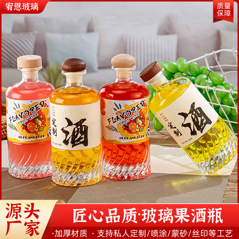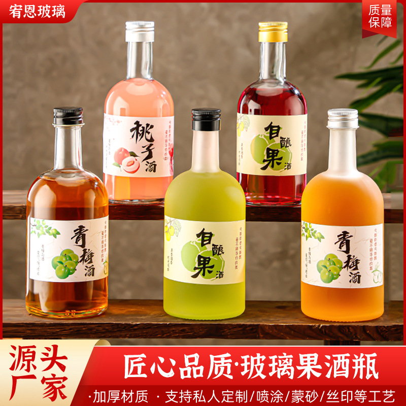 ウォッカ酒瓶透明蒙砂果酒瓶330ml 500ml洋酒瓶自醸造梅酒瓶セットラベル付き