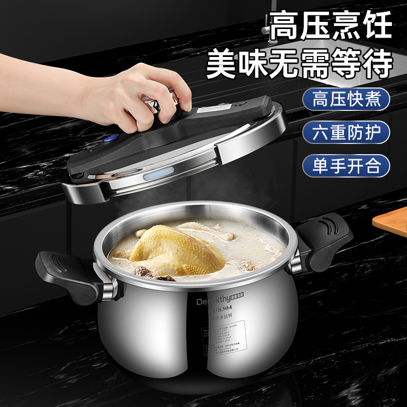 新型304ステンレス鋼製防爆圧力鍋、家庭用ガス・電磁調理器対応、大容量、汎用