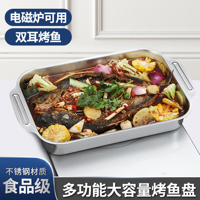 家庭用魚焼きトレイ ステンレス製魚焼き皿 長方形 業務用電磁調理器専用魚焼き鍋 深型焼き皿