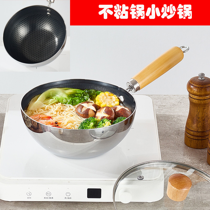 三層鋼コーティングなし304ステンレス鋼日本式深み不粘着鍋家庭用ミニ炒め鍋ガス共通