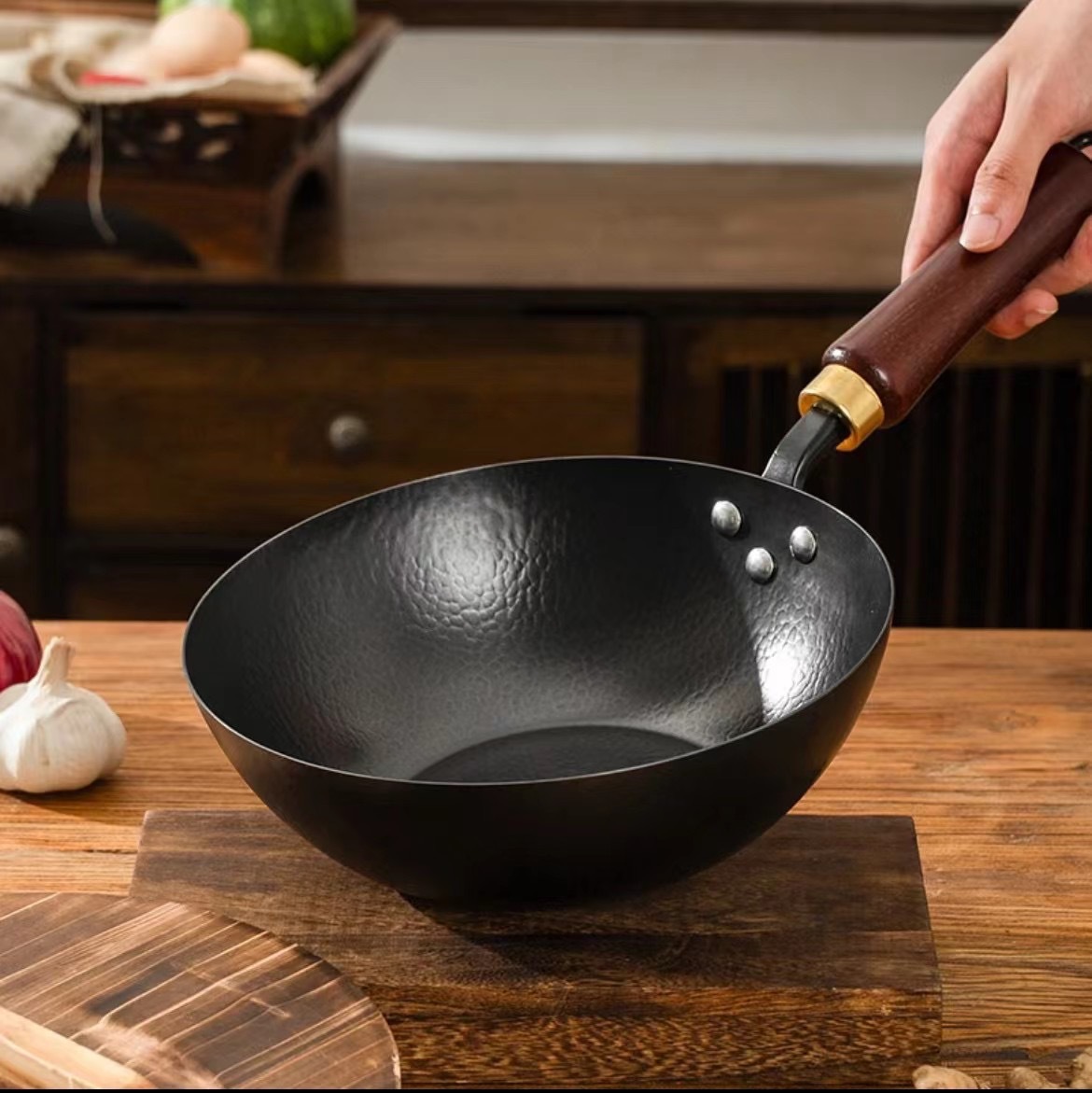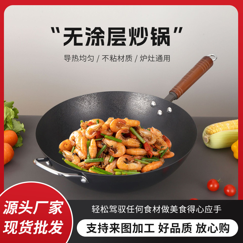 章丘手作り鉄鍋丸底炒め鍋家庭用コーティング炒め鍋ガスコンロは鍋の底にくっつかない