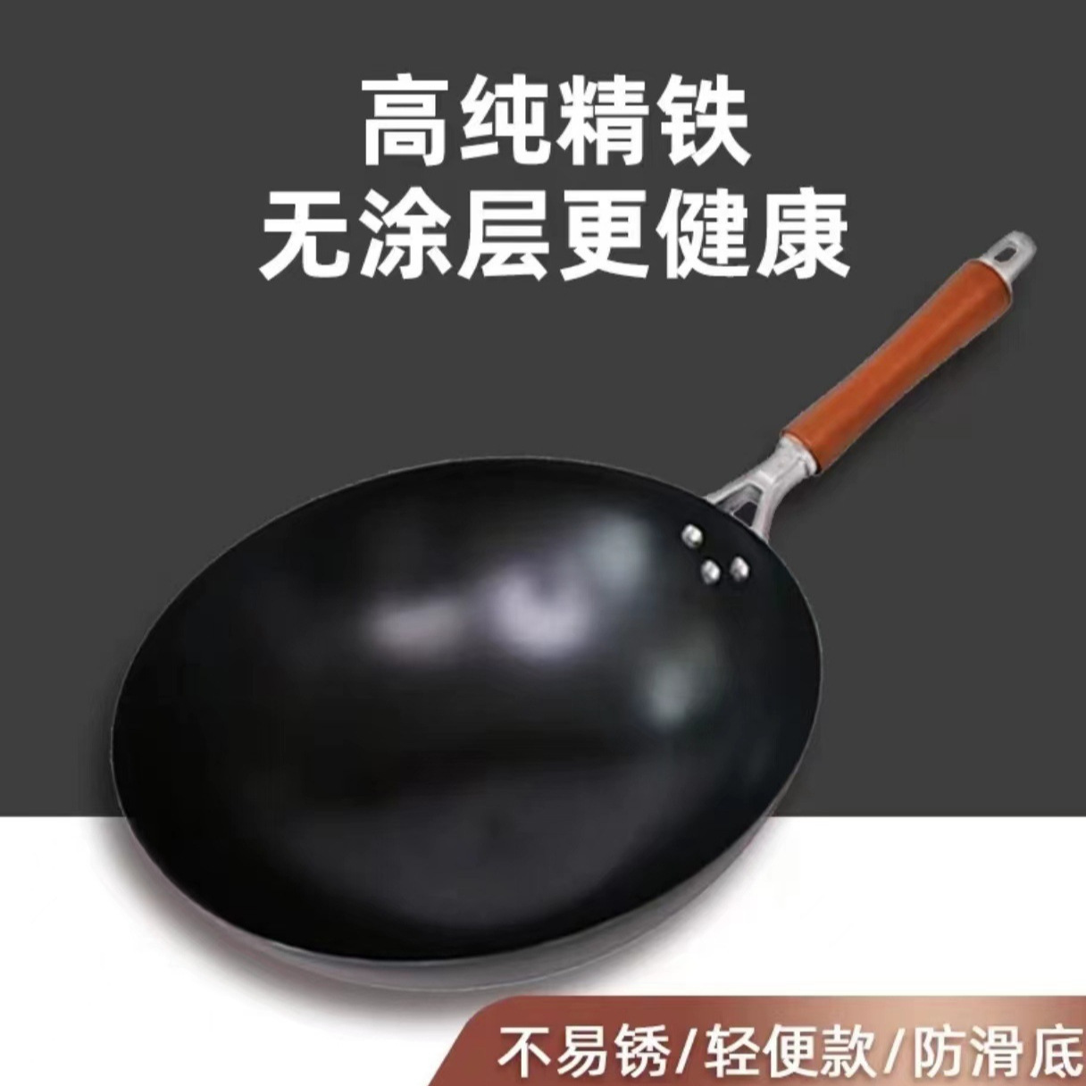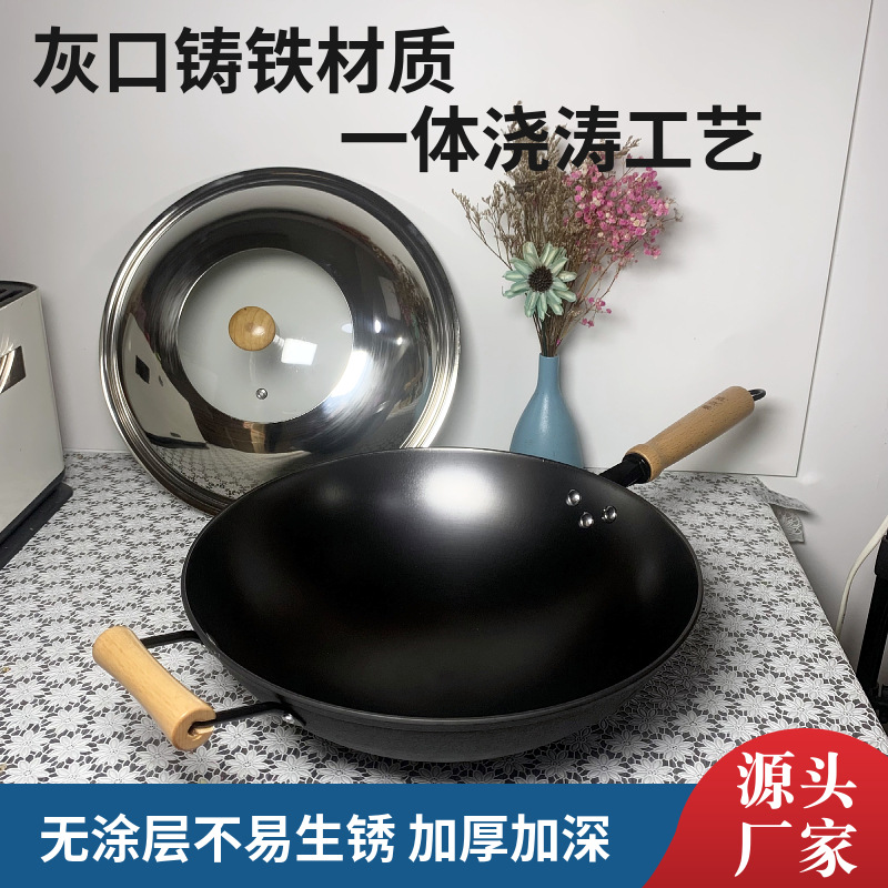 手を振って爆発した鉄鍋鋳鉄鍋家庭用の丸い底の古い炒め物鍋はコーティングされていない電磁ストーブのガスは通用していない
