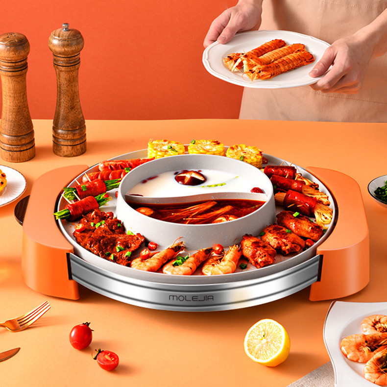 多機能しゃぶしゃぶ一体型鍋家庭用電気焼き炉麦飯石無粘焼肉鍋鴨鍋電熱鍋