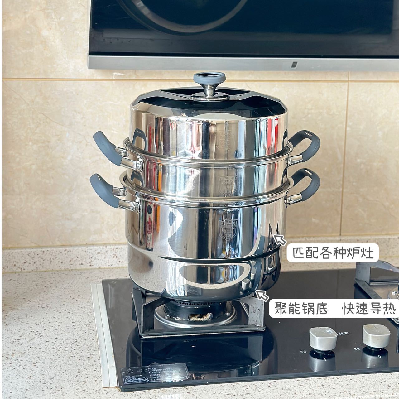 麦飯石家庭用非粘着多機能ダブル用微圧炒め鍋蒸煮一体鍋電磁炉ガスコンロ共通
