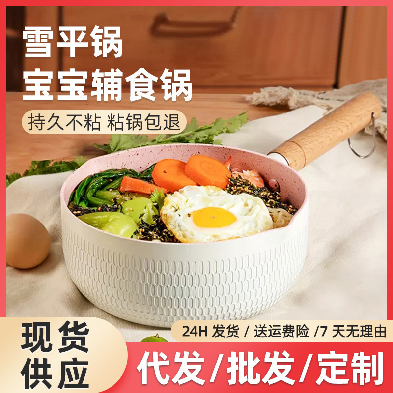日本式雪平鍋家庭用多機能麦飯石小乳鍋カップラーメン鍋赤ちゃん補助食鍋抗菌無粘着鍋バッチ