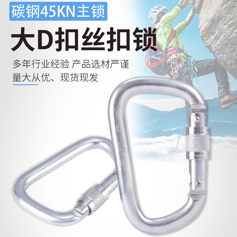 45KN炭素鋼大D型登山ボタン安全主ロック屋外ロッククライミング快掛手ロック安全フック登山自動ボタン