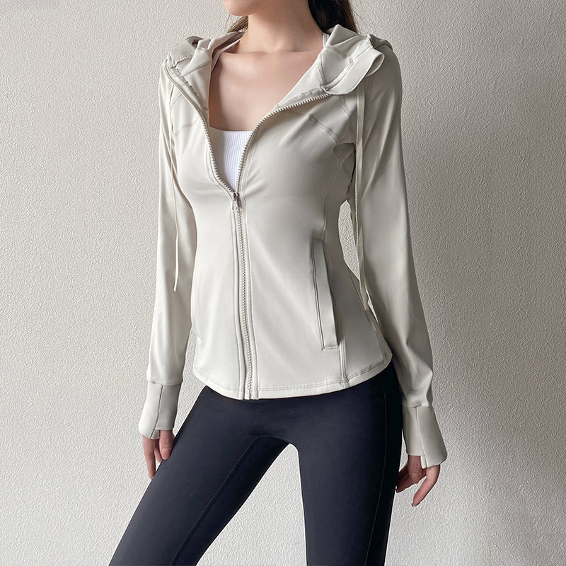 ルルヨガウェアジャケット春秋フード付きレディースジャケット伸縮性スリムフィットジッパースポーツフィットネス長袖トップス