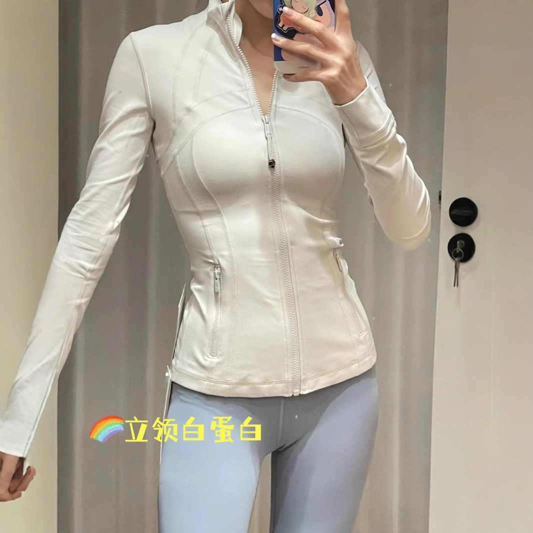 ルルヨガウェアジャケット春と秋のスタンドカラーレディース伸縮性スリムフィットスポーツフィットネスジッパー長袖ジャケットトップ