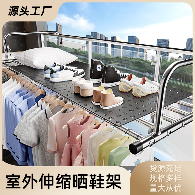 【代件】屋外伸縮靴干し棚ベランダ干し神器防犯窓ガードレール窓外干し棒