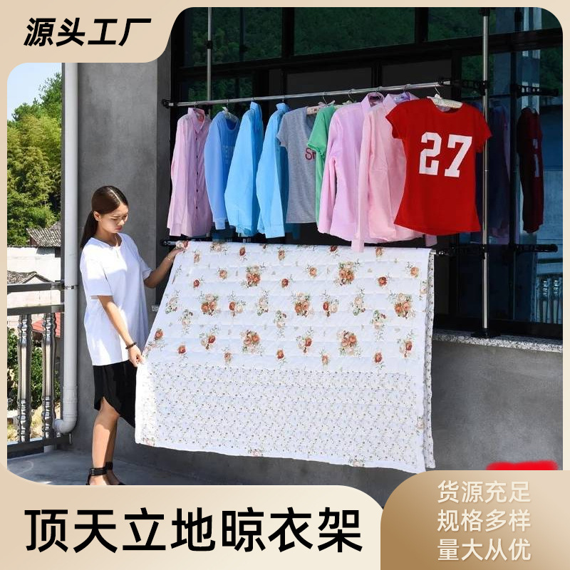 卸売り三棒式物干し棒ベランダ寮の学生はハンガーを掛けて床に落ちた室内の家庭用折り畳み服の帽子の棚を掛けます。