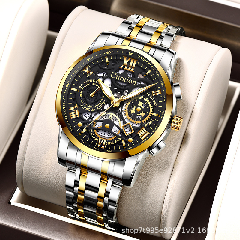 全自動機械式時計メンズ腕時計中空防水発光デュアルカレンダークォーツ時計 Douyin Kuaishou ドロップシッピング