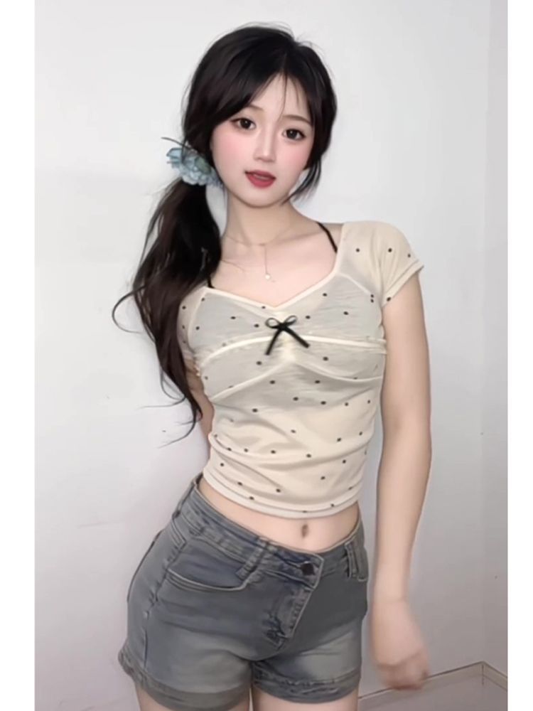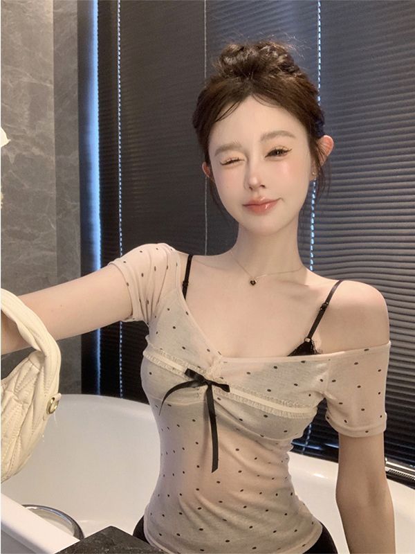 【20枚で送料無料】Pure Desire 薄手水玉セクシー半袖Tシャツ夏ホットガールスリムショートユニークトップ