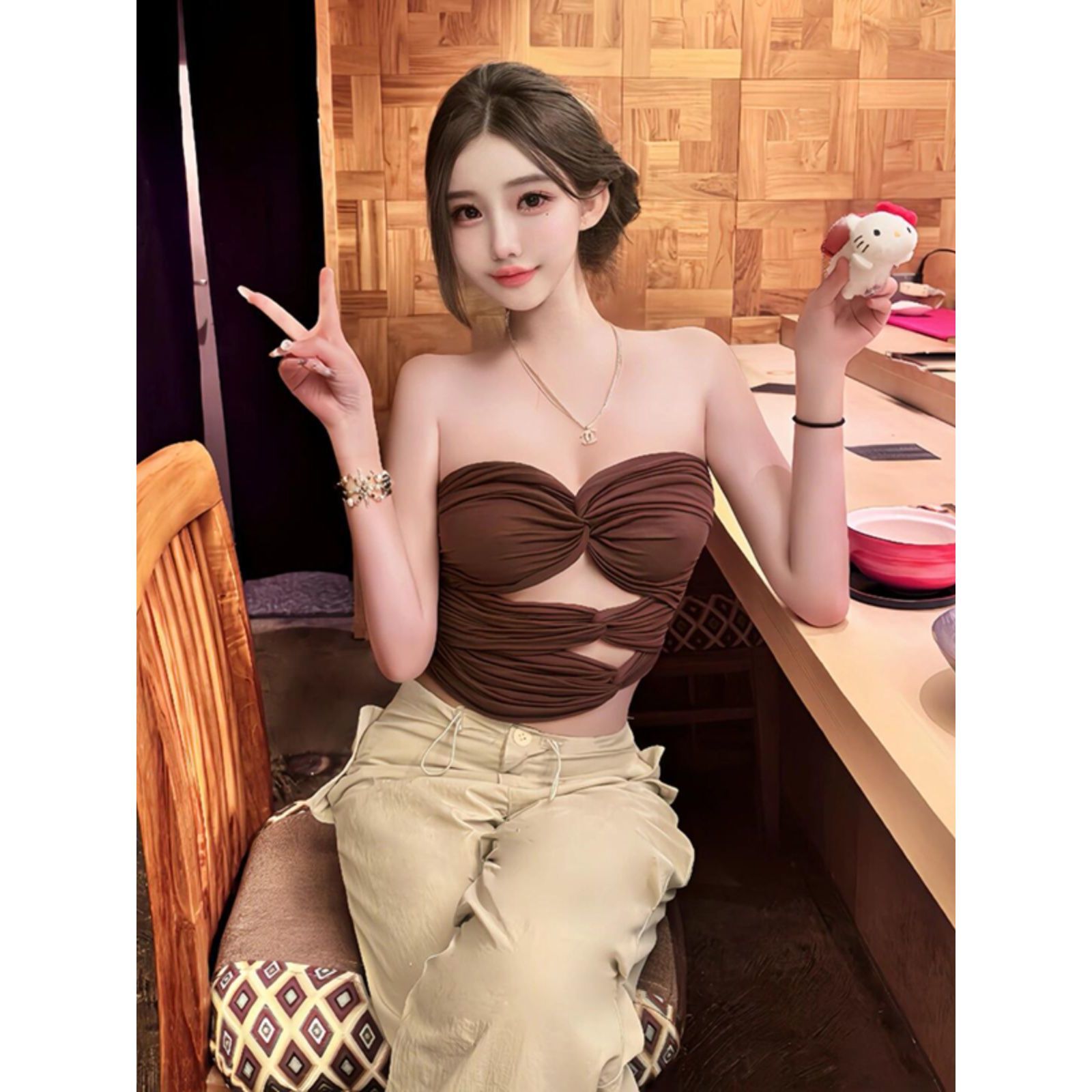 【月間10万個販売】韓国風レトロホットガール風セクシー中空スリムチューブトップデザインツイストトップ