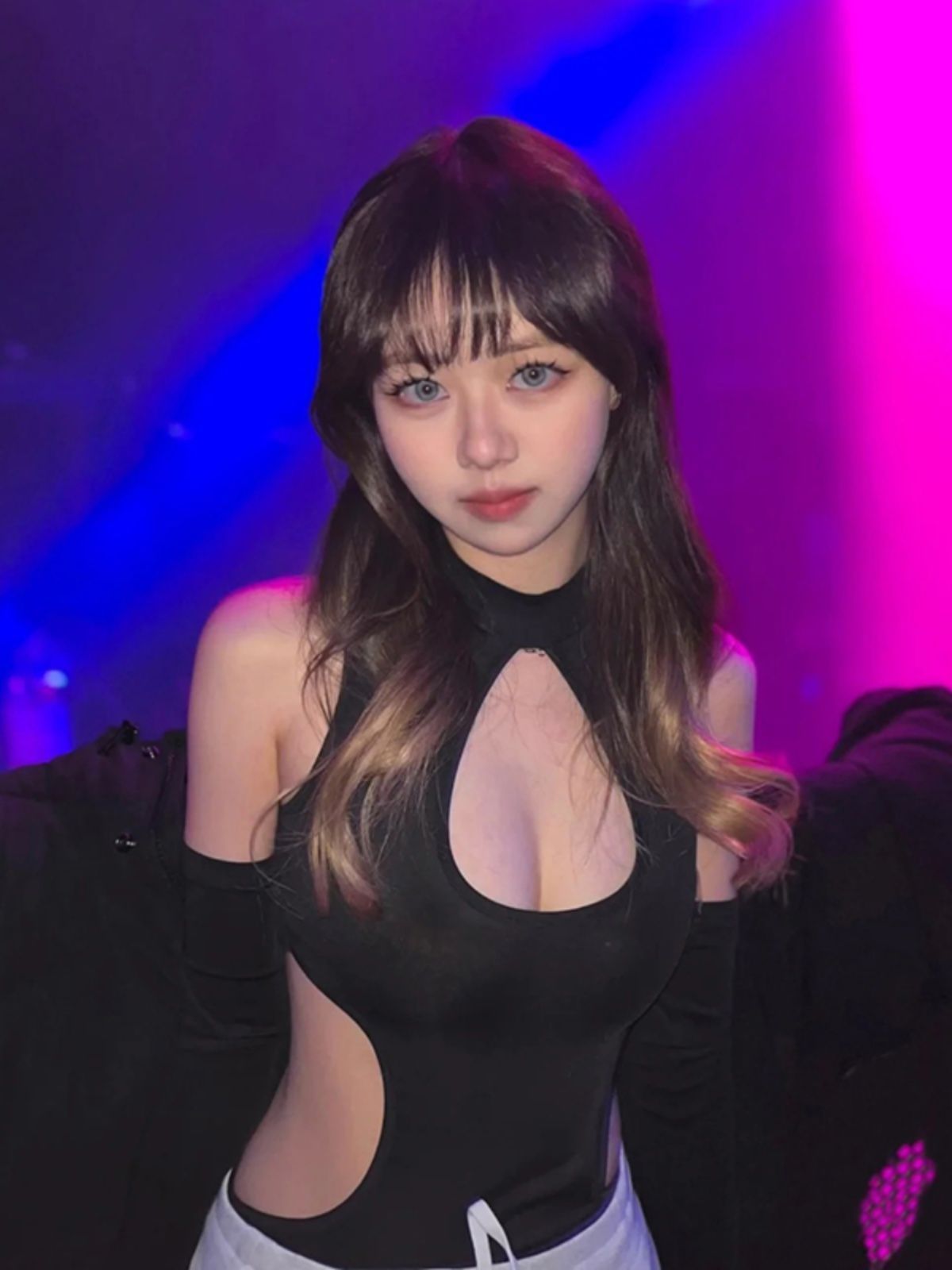 タイのホットガールセクシーな中空デザインウエスト黒ジャンプスーツ女性の夏痩身袖付き韓国スタイルトップ