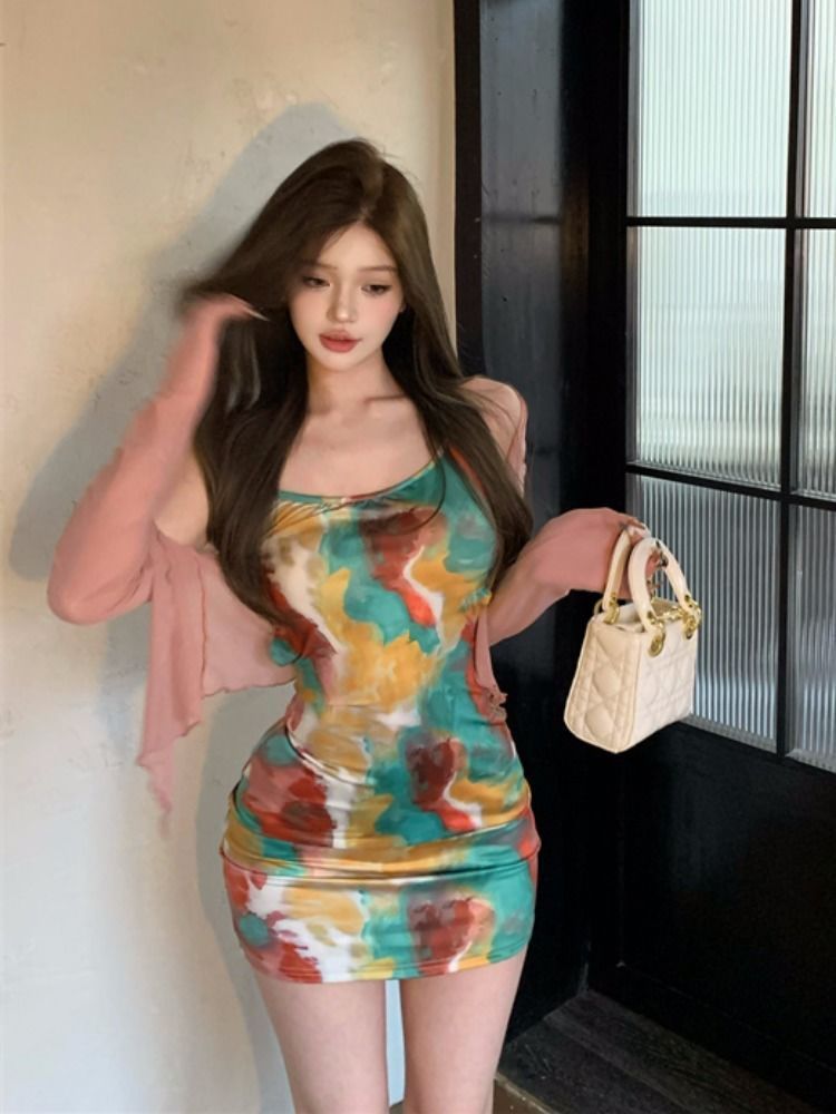 Yujie ホットガールカラフルなブルーミングビューティーバッククロスサスペンダードレス女性のスリムセクシーな純粋な欲望甘くてスパイシーなヒップカバーショートスカート