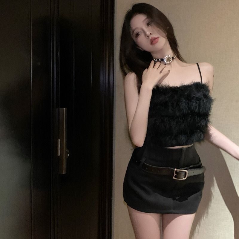 【月間10万本販売】ネットセレブセクシーで甘い妖精の毛皮のようなキャミソール雰囲気と気質のニッチトップストレンド