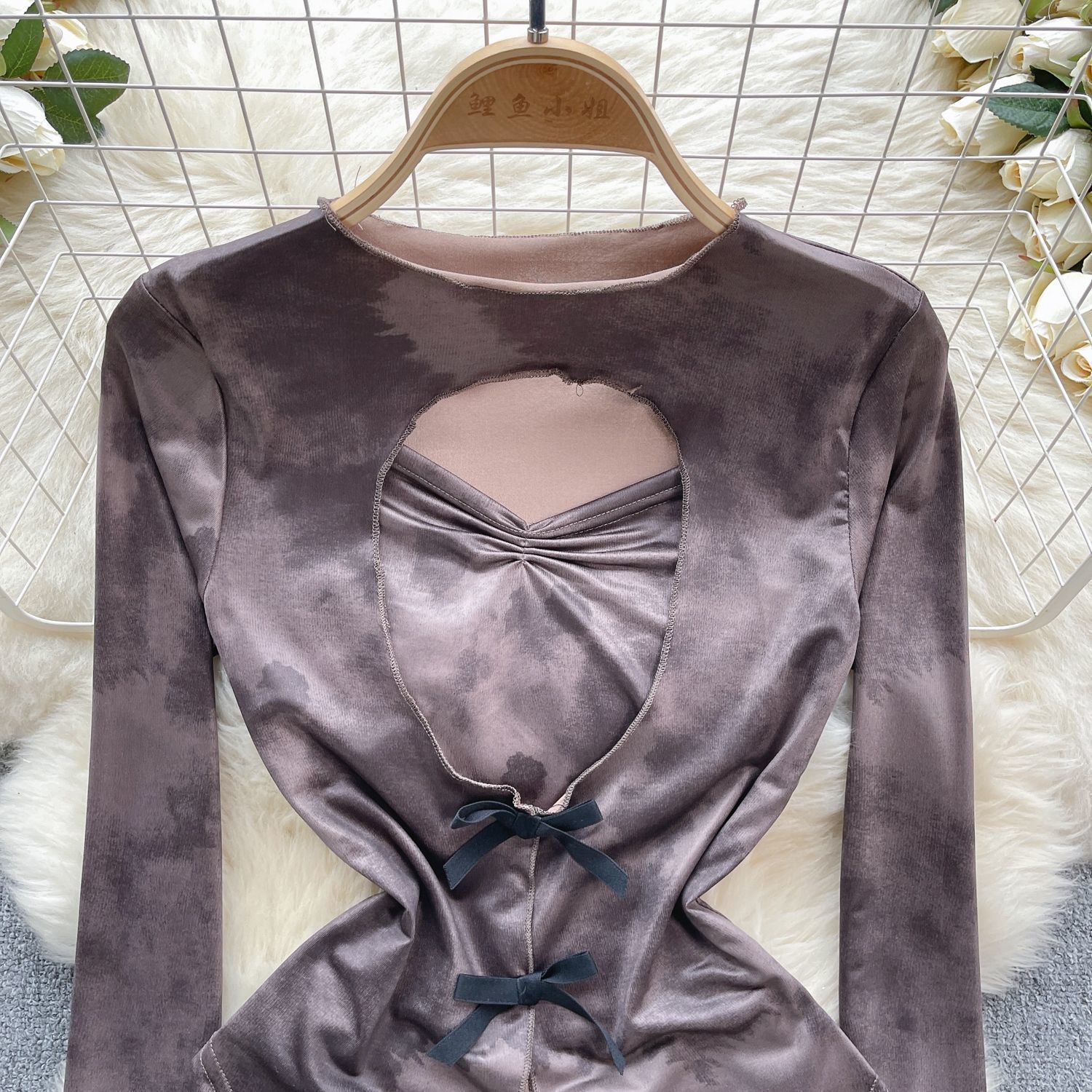 【月間10万本販売】ホットガール風タイダイプリント中空ボトムシャツレディースイレギュラーウエスト気質着痩せトップス