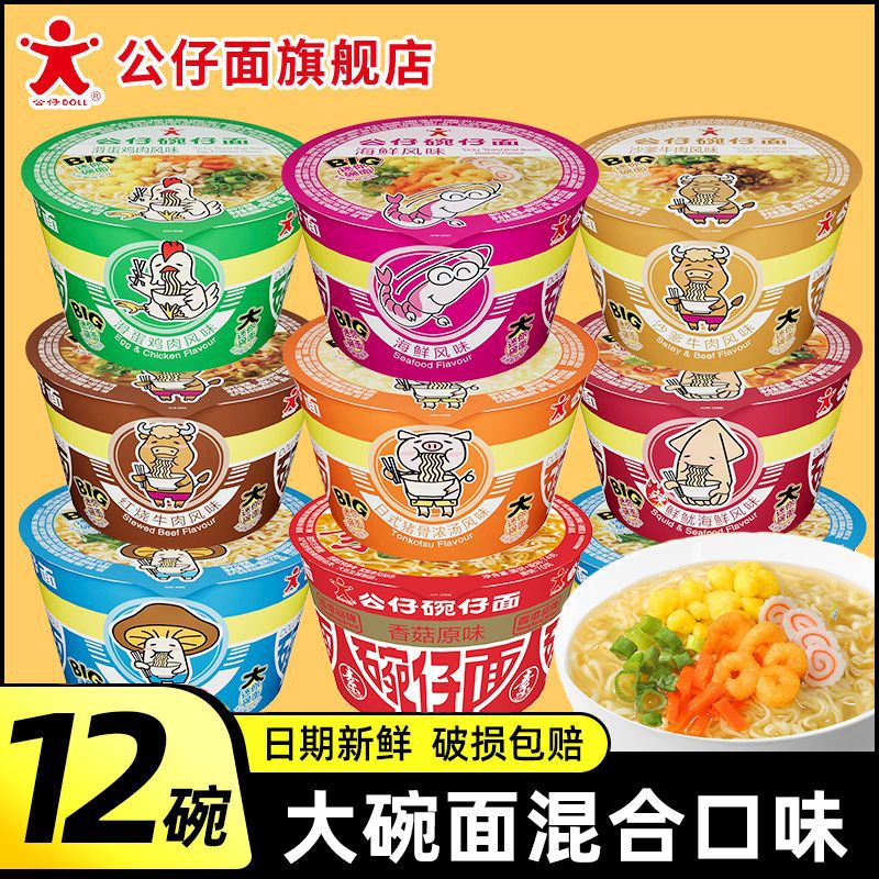 人形麺大ボウル全箱卸売12ボウルシーフード6味人形麺インスタントラーメンインスタントラーメン大樽