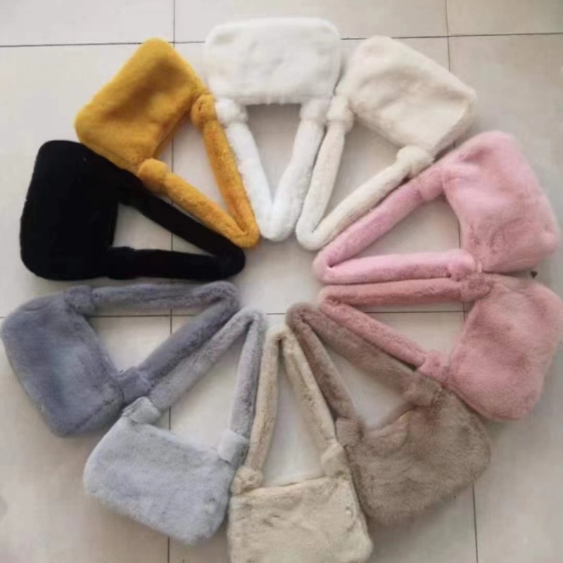 シンプルな秋冬は、ウサギの毛の脇にあるギョーザのバッグをまねる。