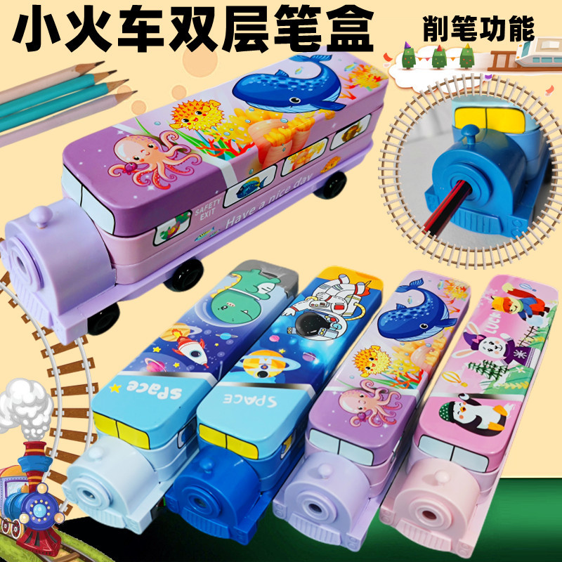 卸売機関車二層文具箱クリエイティブ多機能筆箱削り学生文具ホリデーギフト