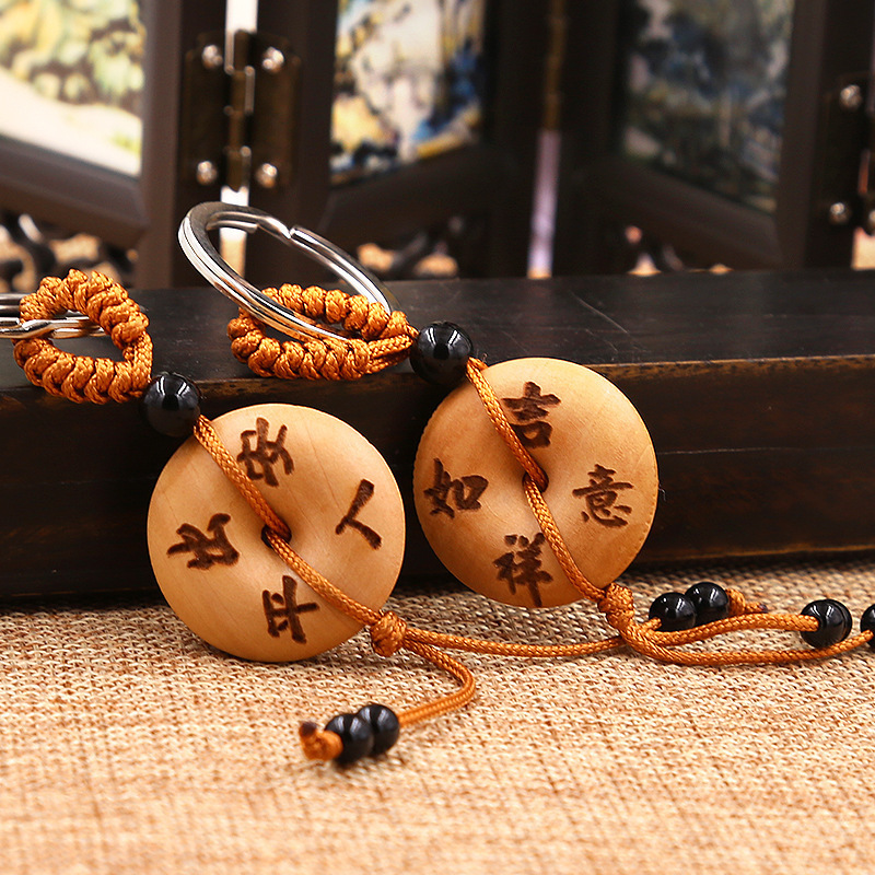 メーカー卸売平安バックルピーチウッド平安キーホルダーペンダント縁起の良い平安キーチェーン屋台2元店