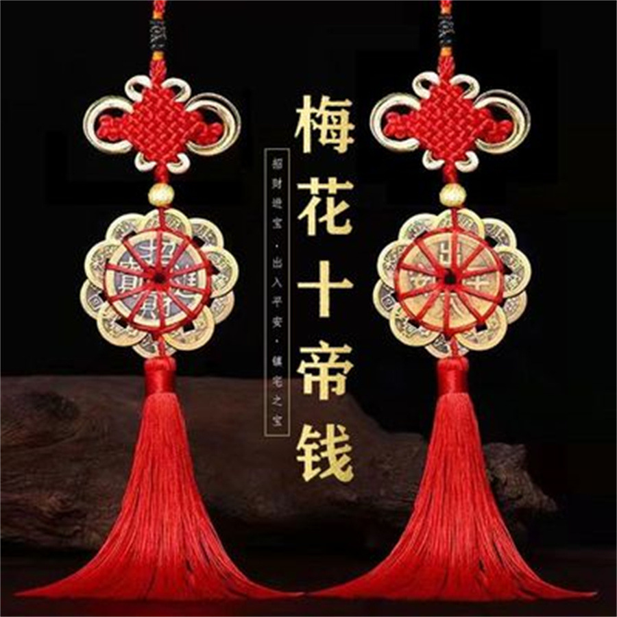 純粋な黄銅の梅の花の十帝のお金の五帝のお金の金は財鎮の家を招いて平安門のドアのペンダントの自動車の装飾に入ります。