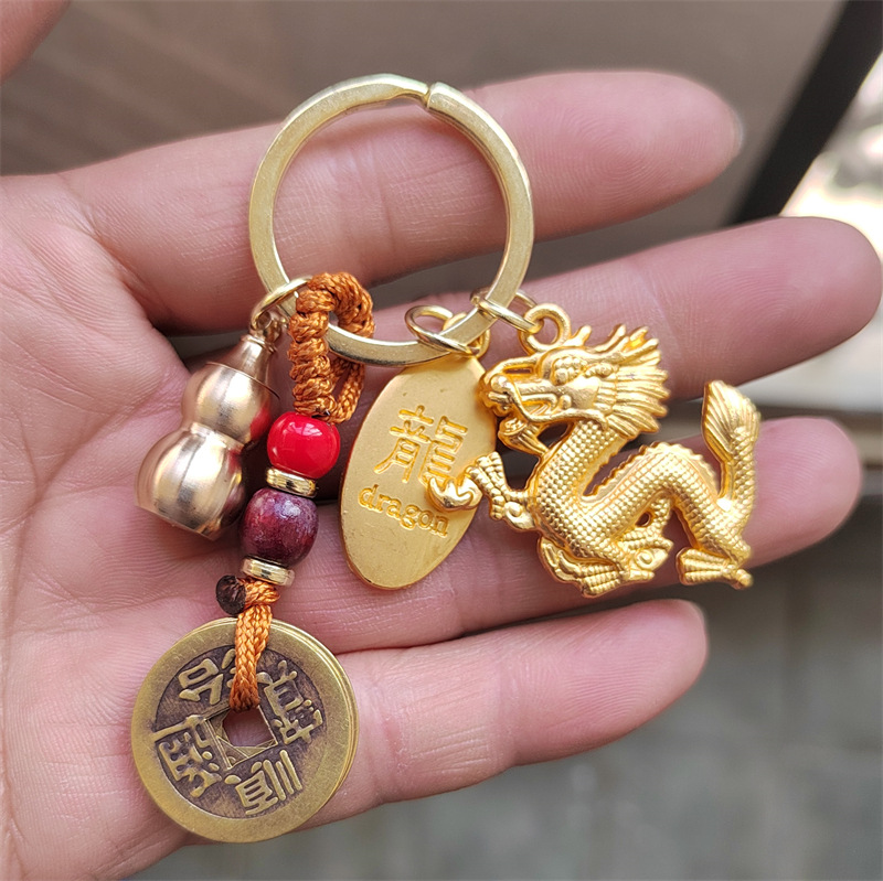 真鍮の竜年のキーホルダーの立体竜五帝のお金のペンダントの小さいプレゼントの竜のペンダントの小さい贈り物のキーチェーンのひょうたん