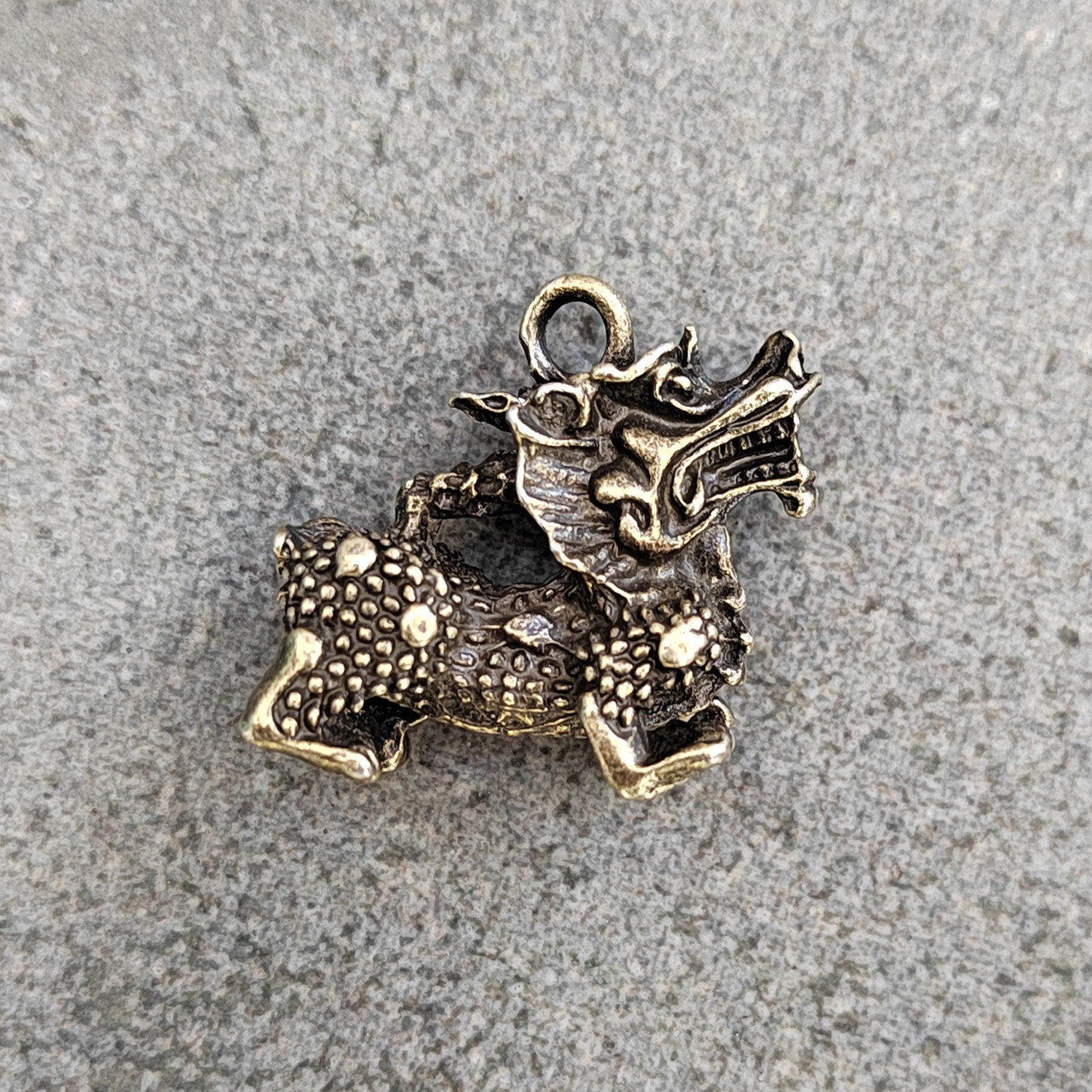 真鍮の精密彫刻麒麟神獣龍の子の中実の富貴をまねて財を募集します。