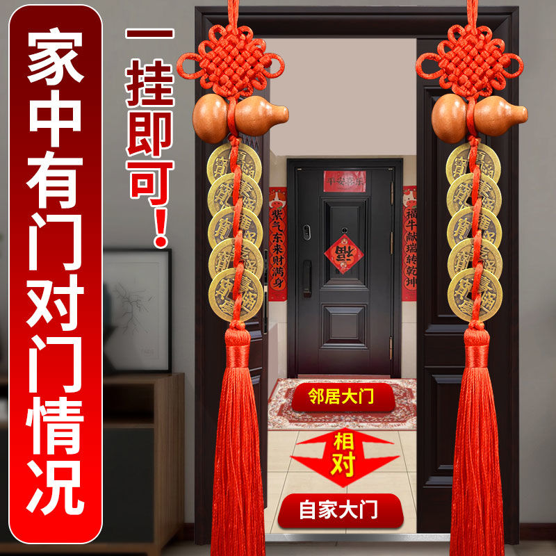 桃木葫芦五帝銭吊飾 ドア掛け 2024年モデル 家庭用 幸運の中国結び吊飾