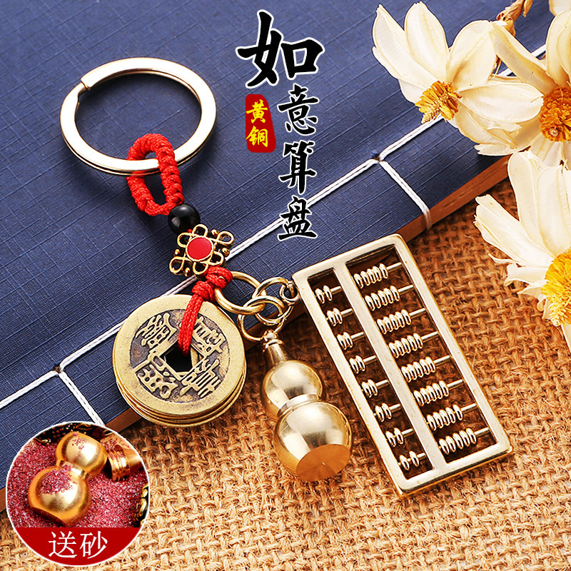 震え音の露店真鍮中空ひょうたんゴシップ招財入宝キーホルダー部品自動車ストラップは砂卸売りができる