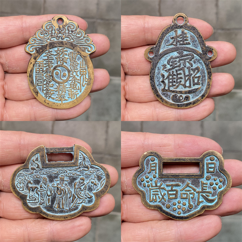 金と宝を引き寄せる真鍮、黄金 0kg 桂字山鬼長寿富ペンダント祝福と長寿ロック