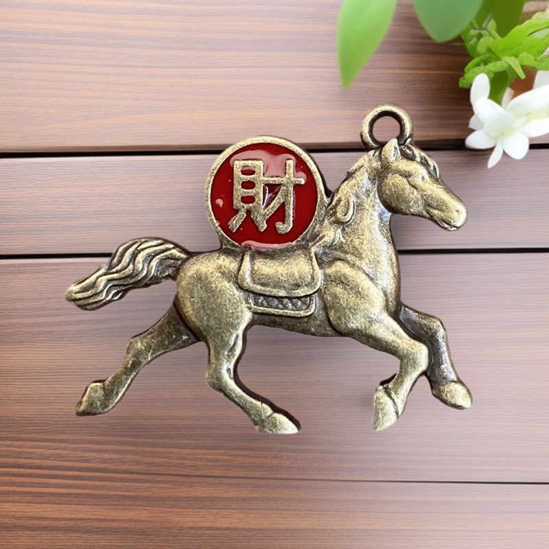 純黄銅福禄一葉生財十二生肖のキーホルダー
