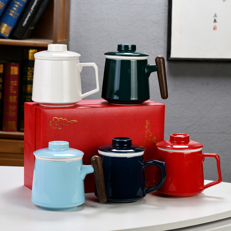 陶磁器のコップのティーカップは蓋の事務のコップのギフトボックスの白い磁器のコップを持って濾過の中の胆の贈り物のlogoを持って作ります。