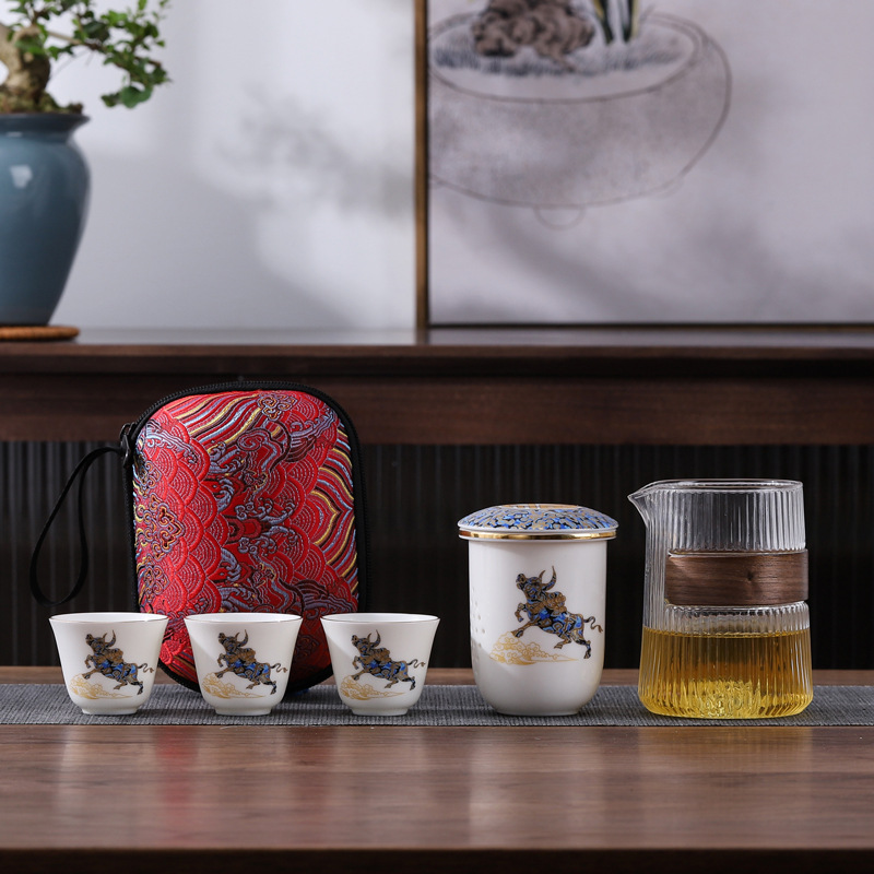 白磁旅行茶器セット携帯用工夫茶器屋外陶磁器蓋碗茶器プレゼントロゴ制作