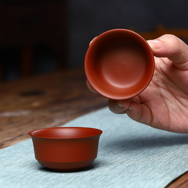 紫砂のお茶の杯の大きい赤い服の工夫の小さいお茶の杯のお茶の部品のお茶の杯のお茶の杯の贈り物のロゴは彫刻して作ります。