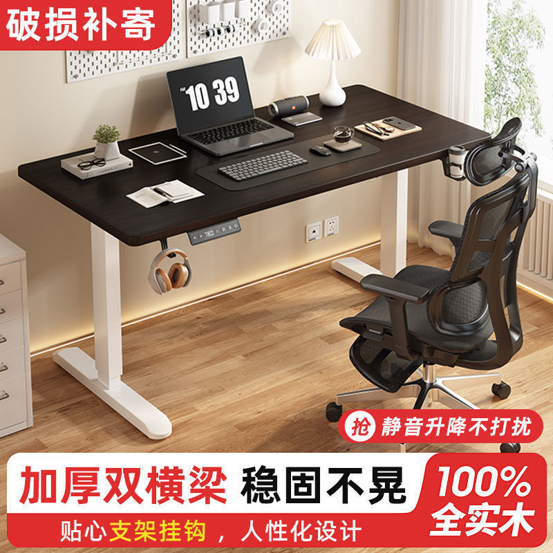 実木電動昇降テーブル双電機立式パソコンデスクはシンプルで家庭用昇降可能な机知能昇降台です。