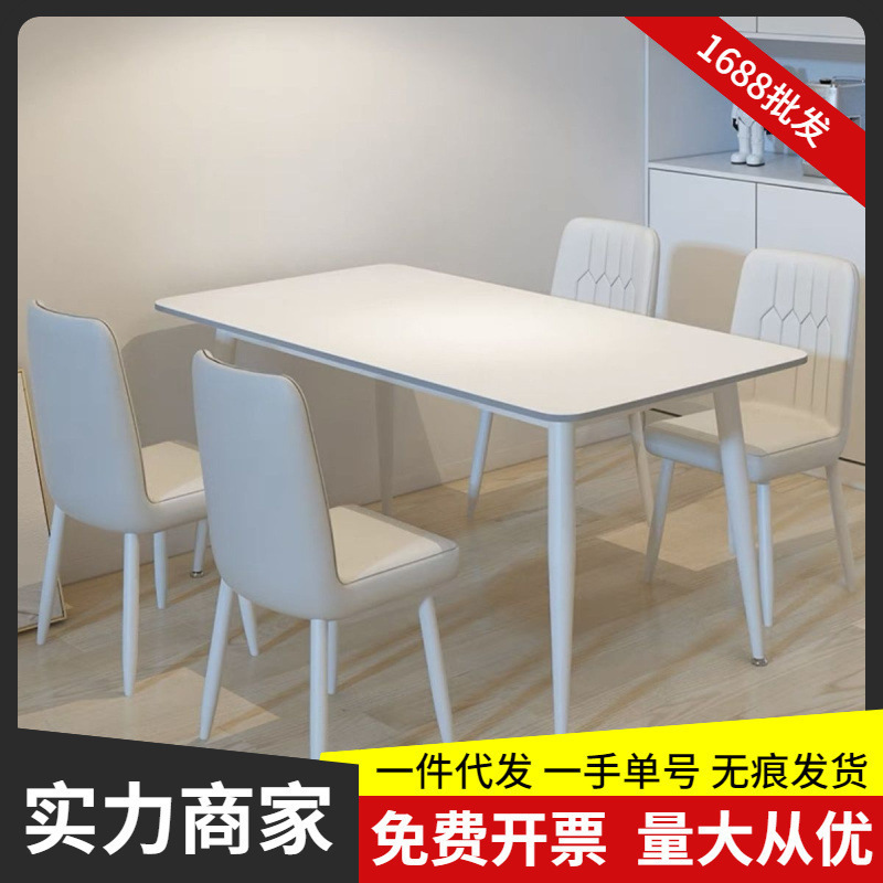 北欧純白スレートダイニングテーブルと椅子家庭用小型純黒ミニマリストライト高級ハイエンド新しい純黒ダイニングテーブル