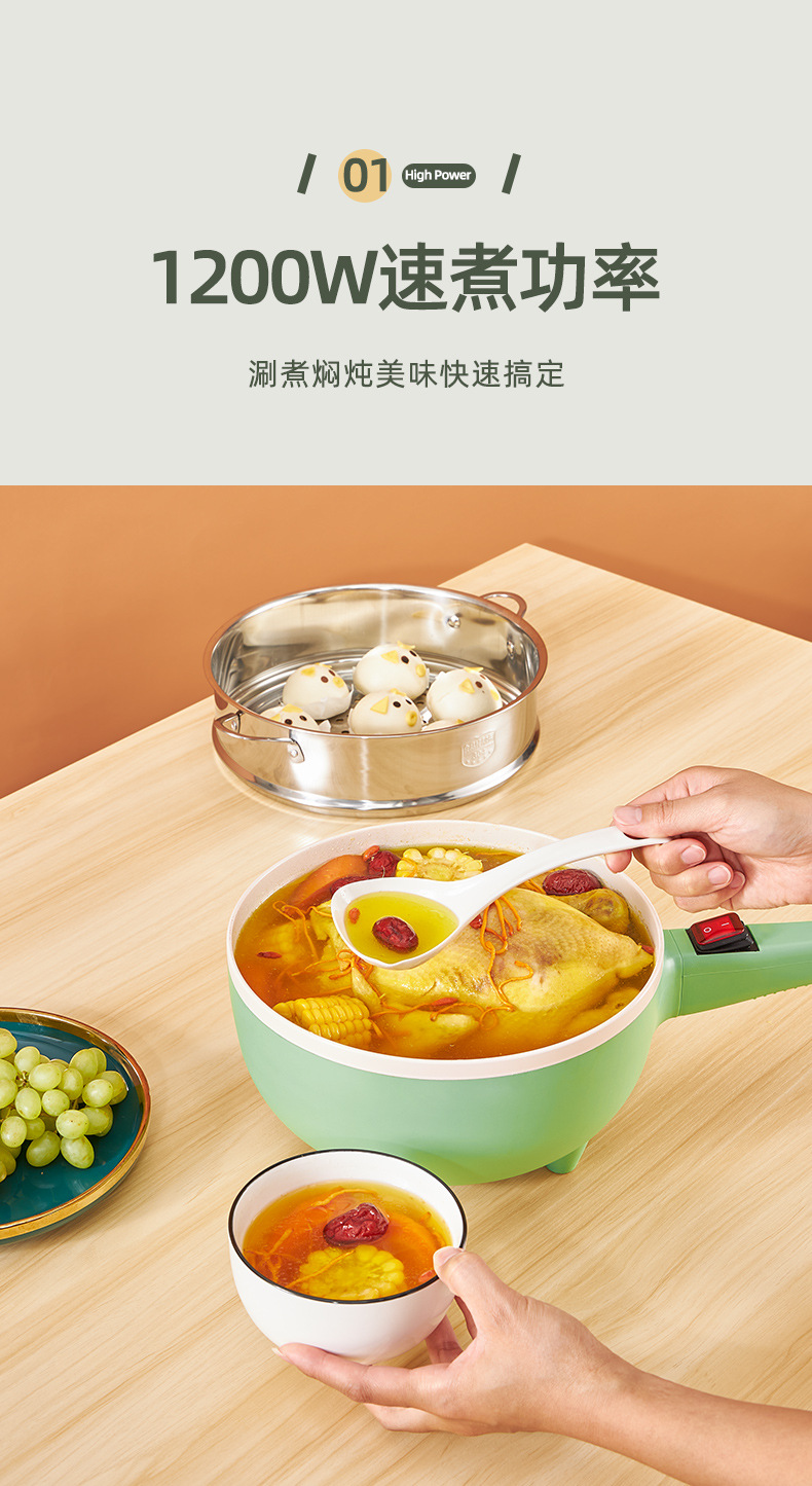 瑞ミル多機能電気炒め鍋陶磁器は内胆家庭用3l大容量蒸煮同期炒め料理一体型鍋をつけない