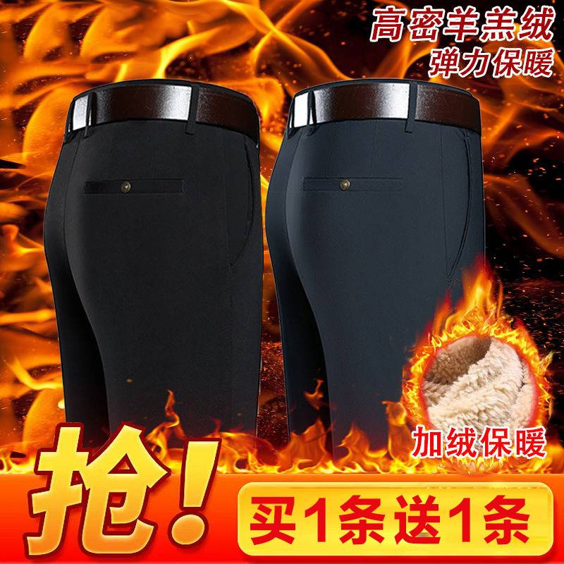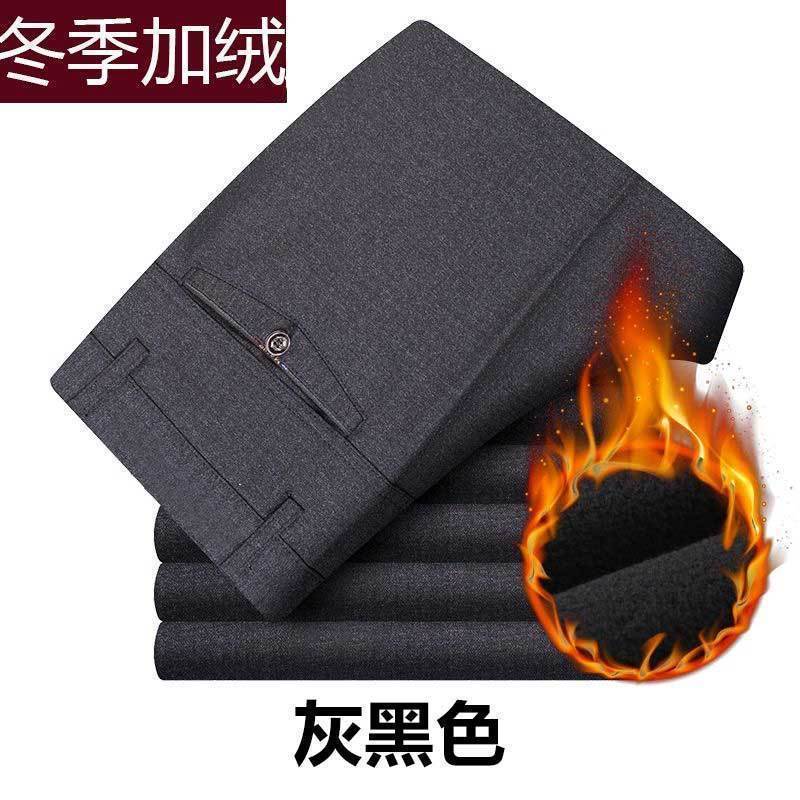 新中国風秋冬ベルベット厚手高弾力中年男性カジュアルパンツストレートビジネスズボン男性ズボン