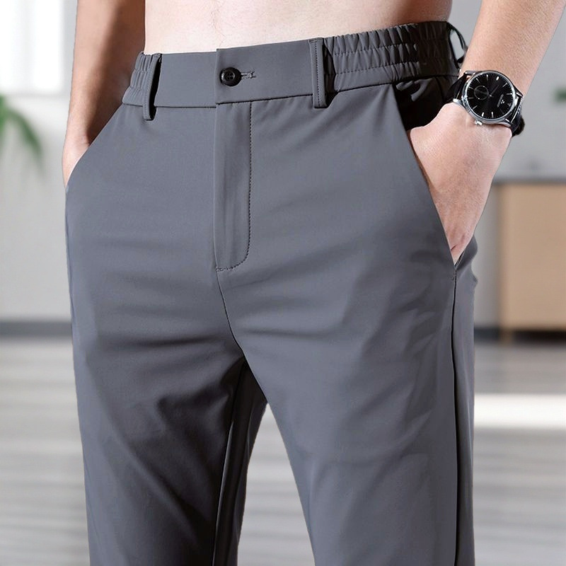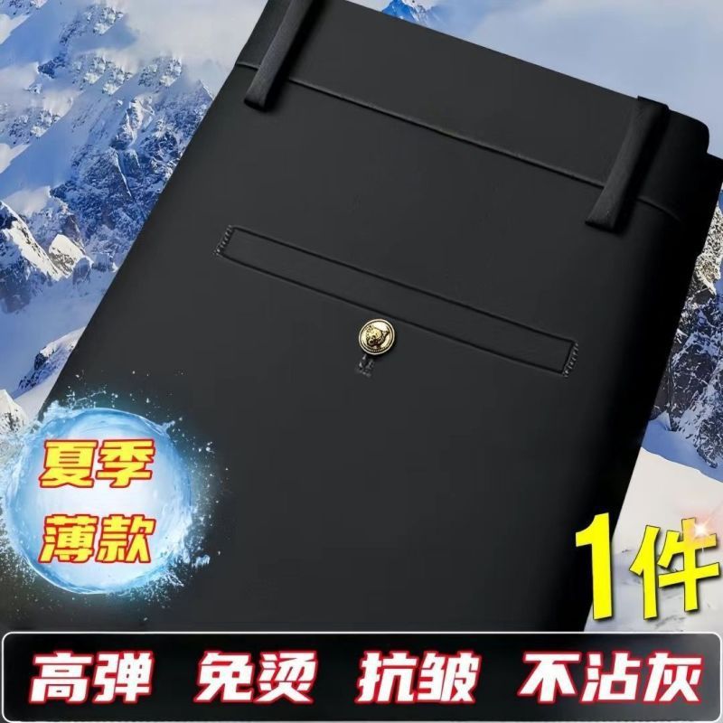 ウェイストランドスタイルメンズアイスシルク薄手ストレッチカジュアルパンツ、ノンアイロン、ゆったり、シワになりにくい、ストレート、人気のハイウエストビジネスパンツ