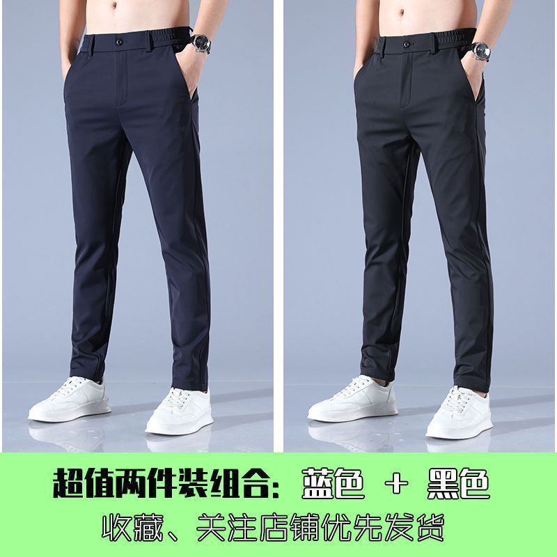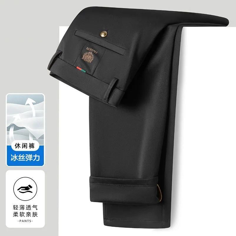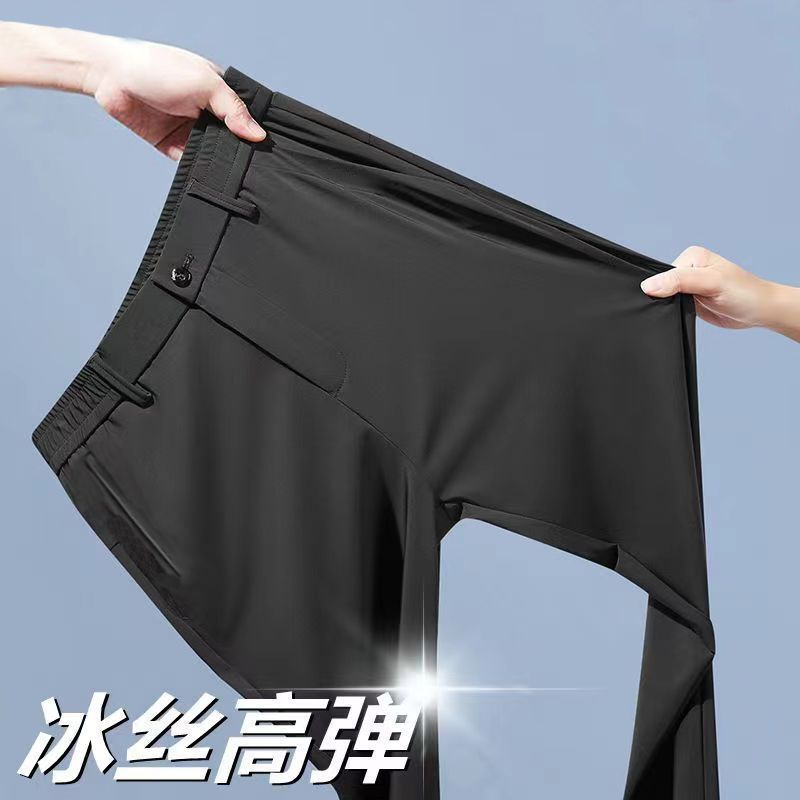 夏薄い半弾性カジュアルパンツメンズアイスシルクパンツメンズ高弾性ストレートルーズビジネスパンツメンズパンツ