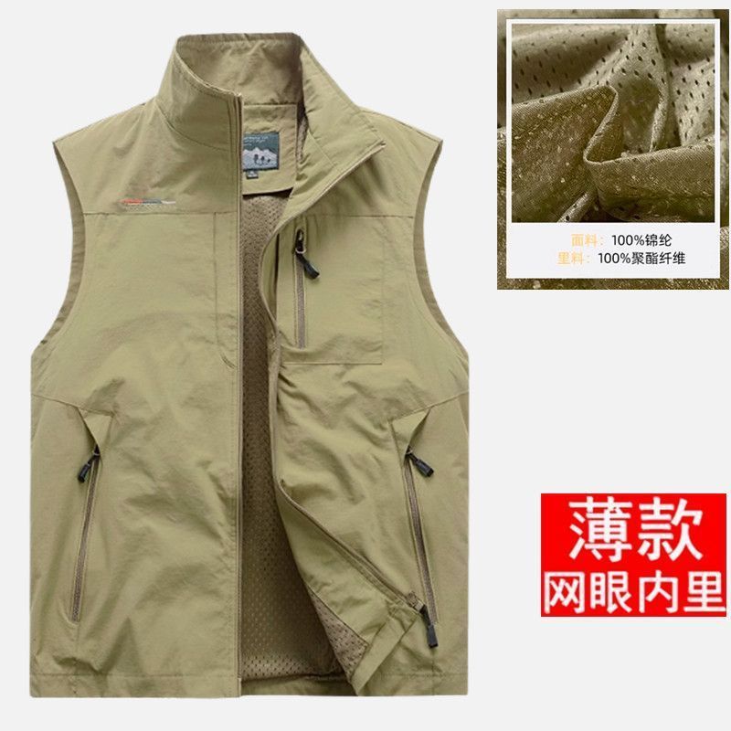 カジュアル速乾ベストメンズ薄型マルチポケットアウトドアフィッシングジャケットベスト写真撮影大きいサイズベストお父さん着用