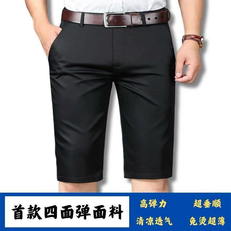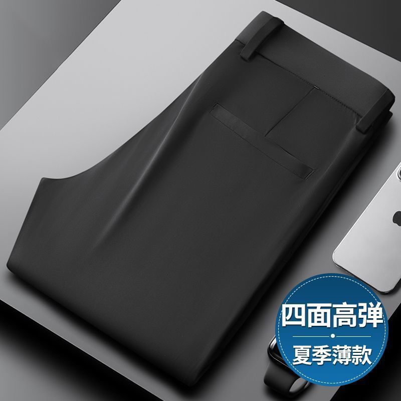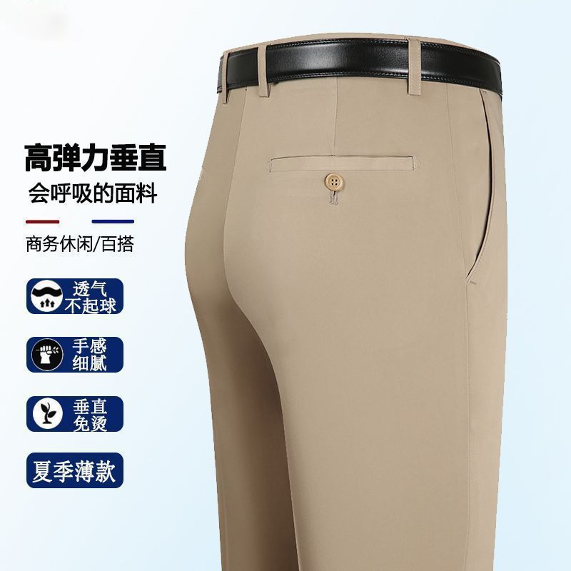 メンズ弾性ズボン、メンズ高弾性ズボン、夏ノンアイロン新作ストレートハイウエストビジネスカジュアルパンツ、アイスシルク