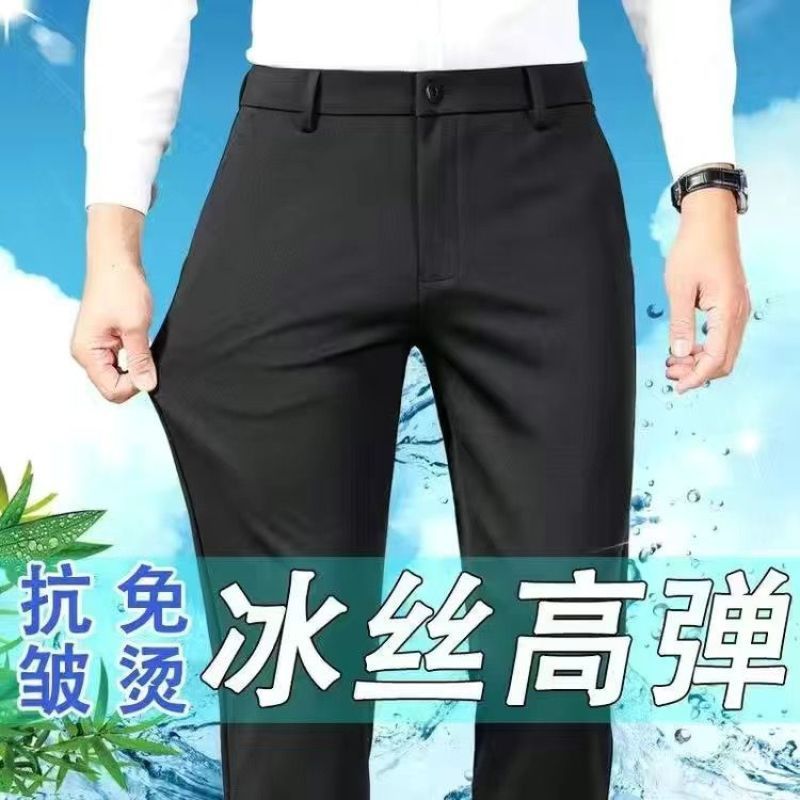 男性カジュアルパンツは、夏の薄手の氷糸のスリムなストレートビジネスパンツ男性の夏服の薄手パンツを熱くしないでください