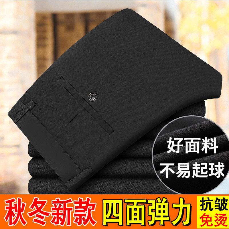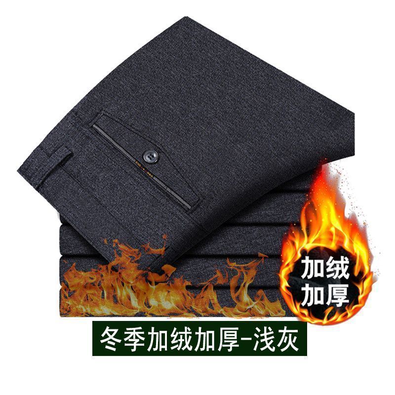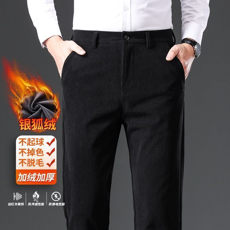 コーデュロイ秋冬厚タイプ中年男性カジュアルパンツ抗シワ無アイロンズボンストレート高級ビジネス百合ズボン