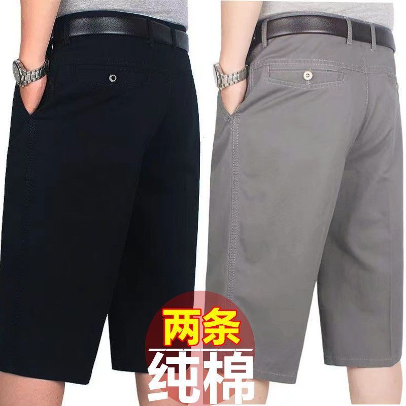 綿100 夏クロップドパンツ カジュアルパンツ パパウェア ハイウエスト 中高年 スーツショーツ 7点ミドルパンツ 薄手 メンズ