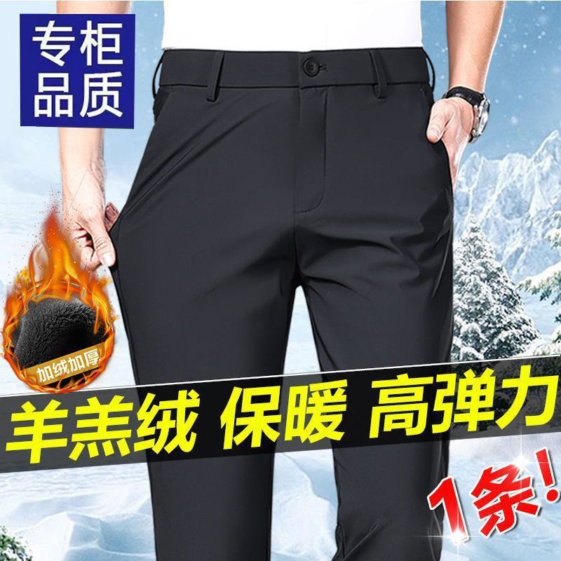 男性カジュアルパンツ秋冬厚手ストレッチ男性ズボン